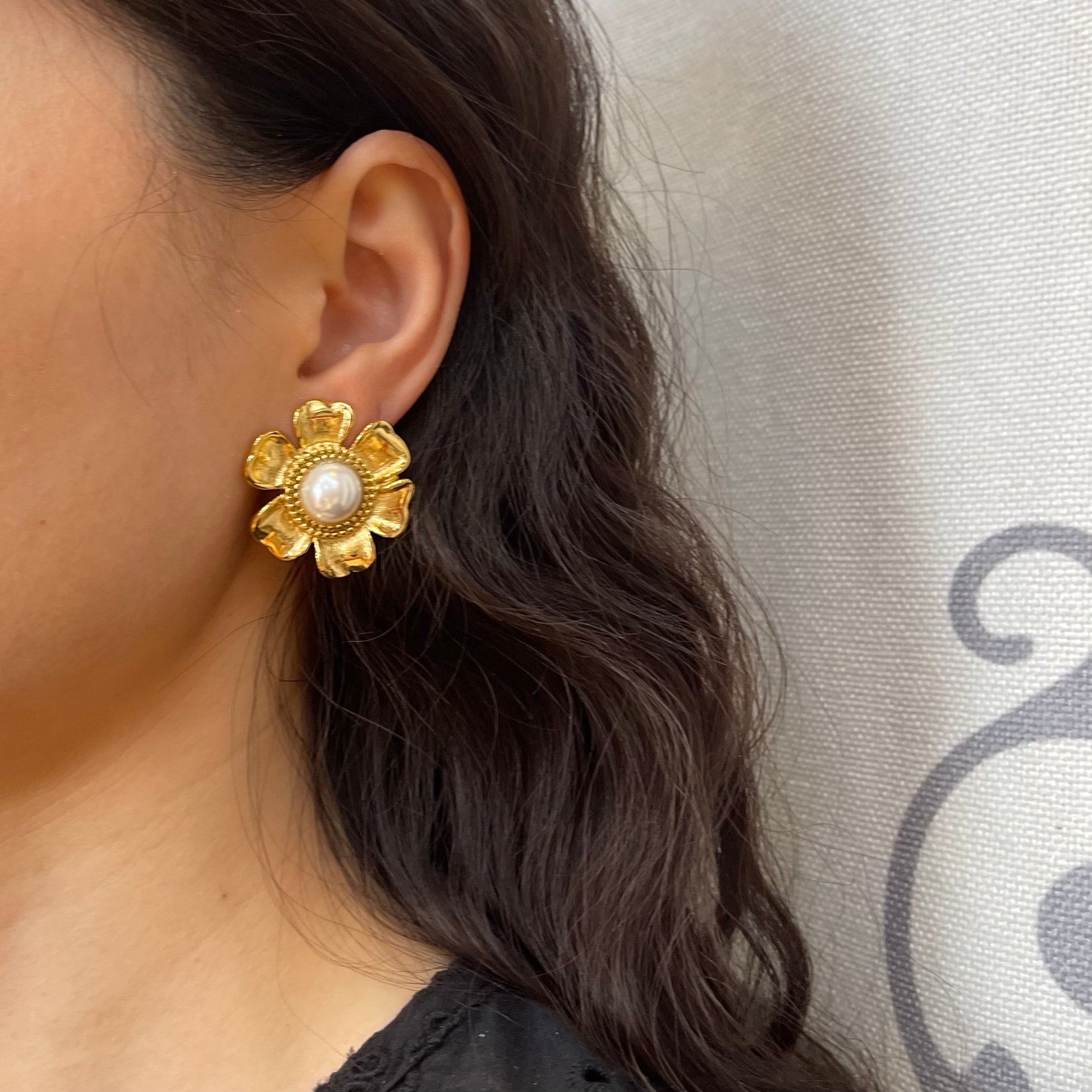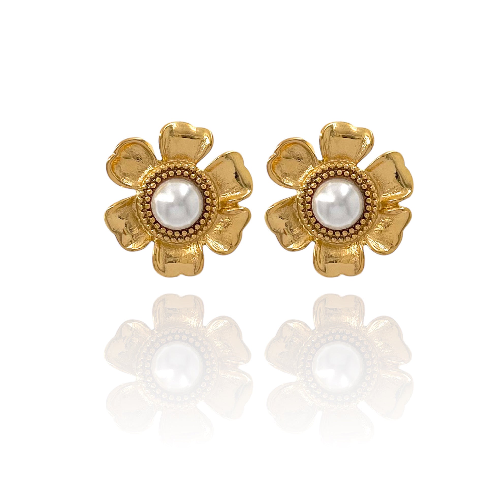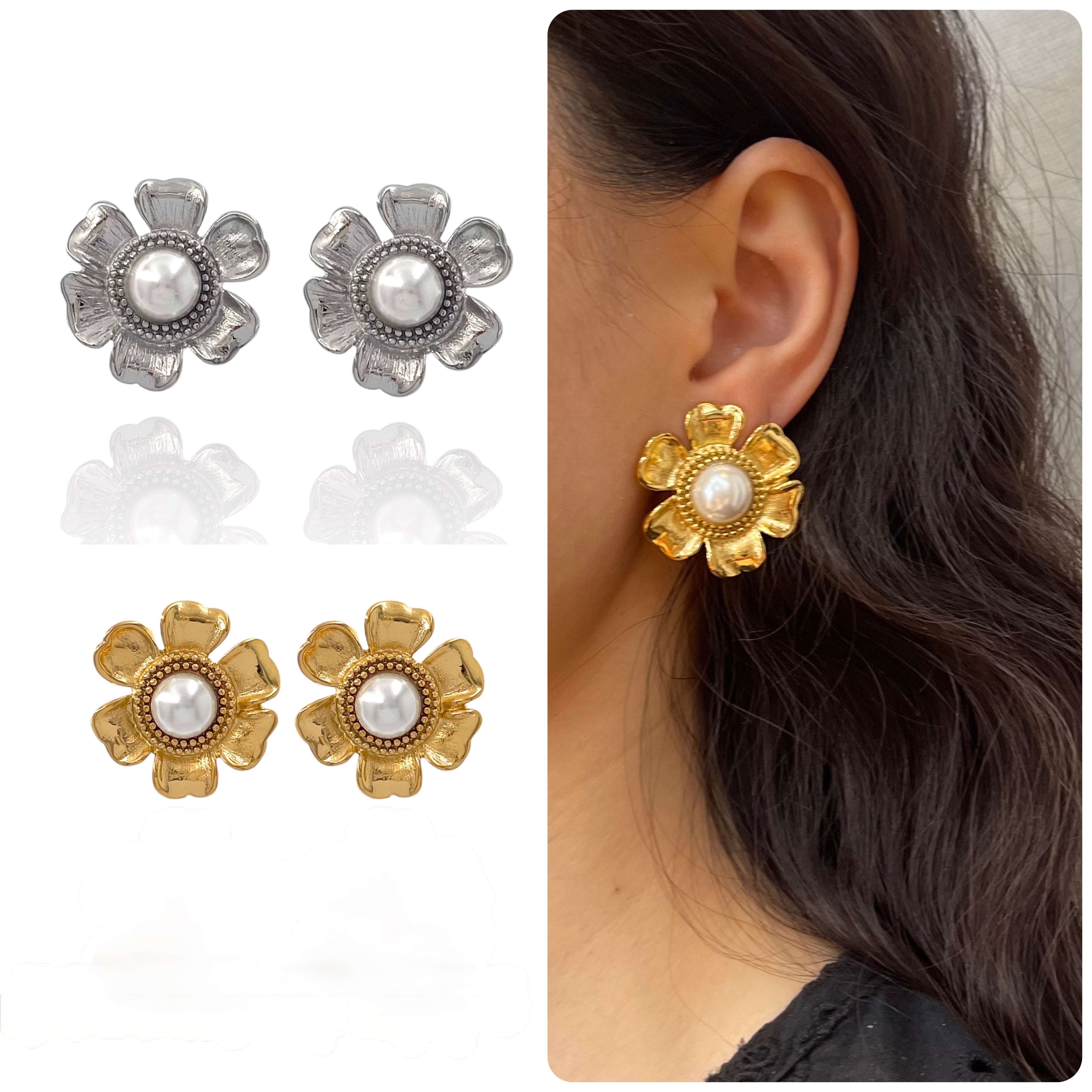 Orecchini in acciaio inossidabile con variante placcata in oro, la perla è sintetica