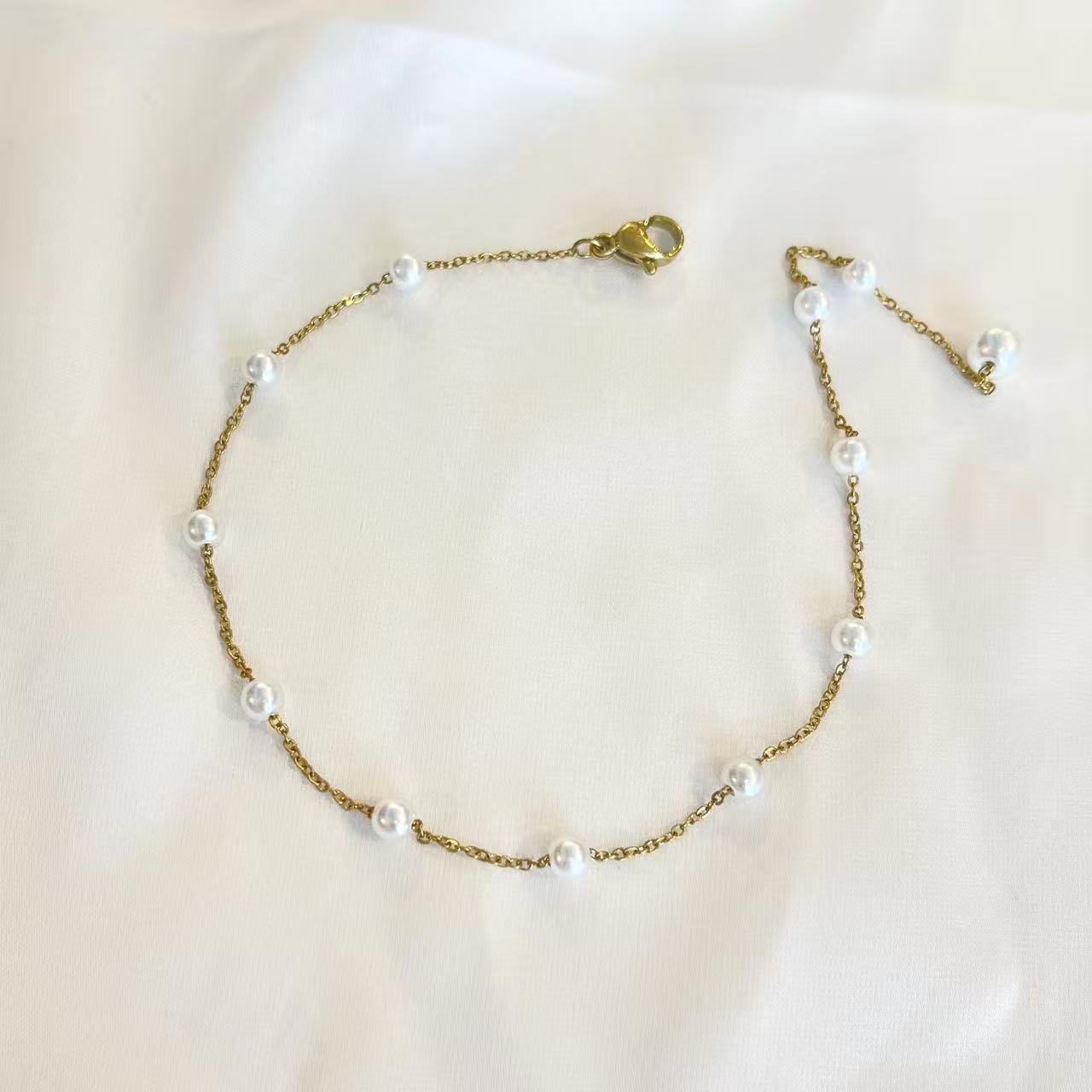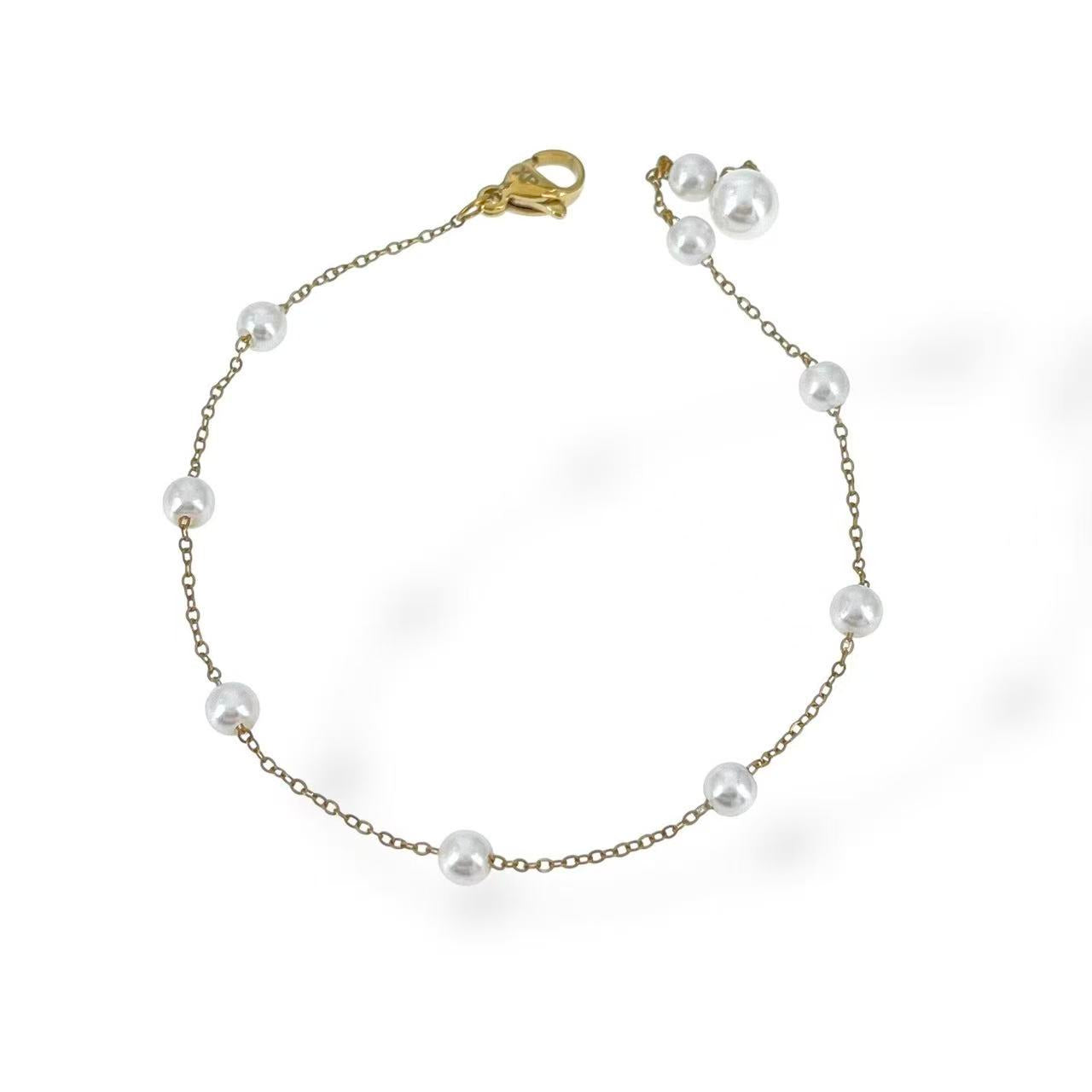 Regolabile per l'intero bracciale fino ad un massimo di 21cm, le parti di metallo sono in acciaio inossidabile placcato in oro, le perle sono sintetiche