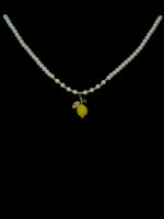 Lunga 38 cm + 5 regolabili, questa collana corta ha tutti i componenti metallici in acciaio inossidabile e variante placcata con oro, è costituita anche da perle artificiali ricavate da madreperla naturale e sulla foglia del ciondolo si presenta una texture diamantata di zirconie cubiche e l'altra in strass